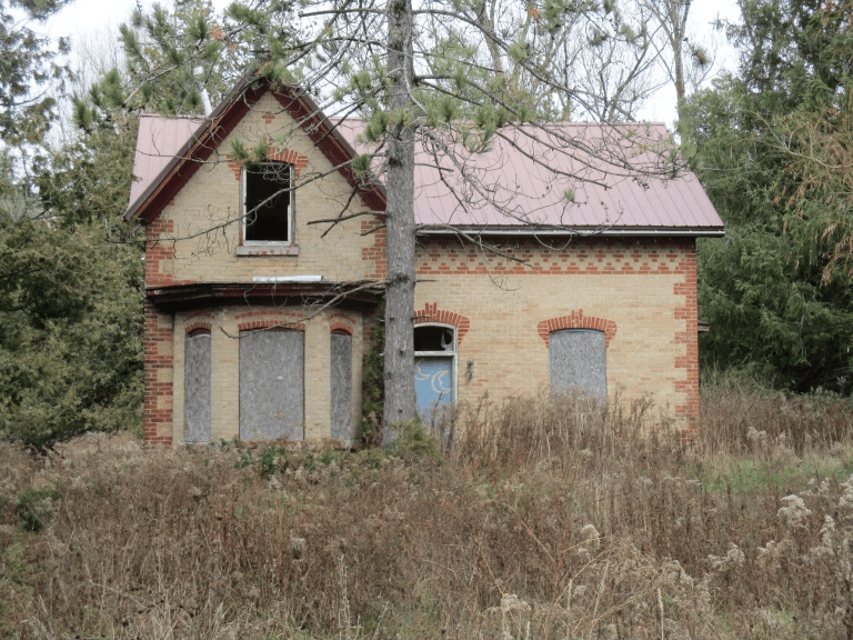 This house near Orangeville recently had the rear wall collapse and may soon disappear.