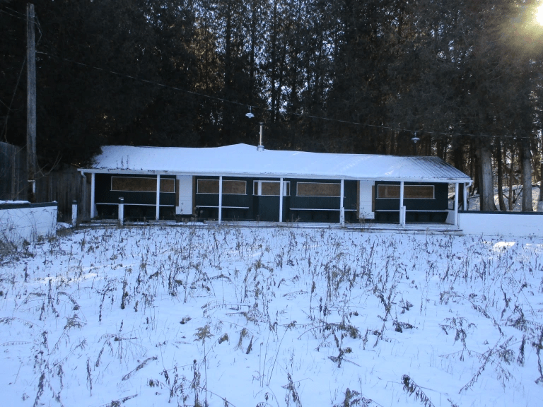 A famous cottage country ghost town with multiple empty buildings.