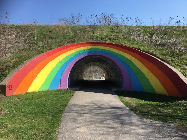 This park features the famous Rainbow Tunnel that can be seen from the Don Valley Parkway .
