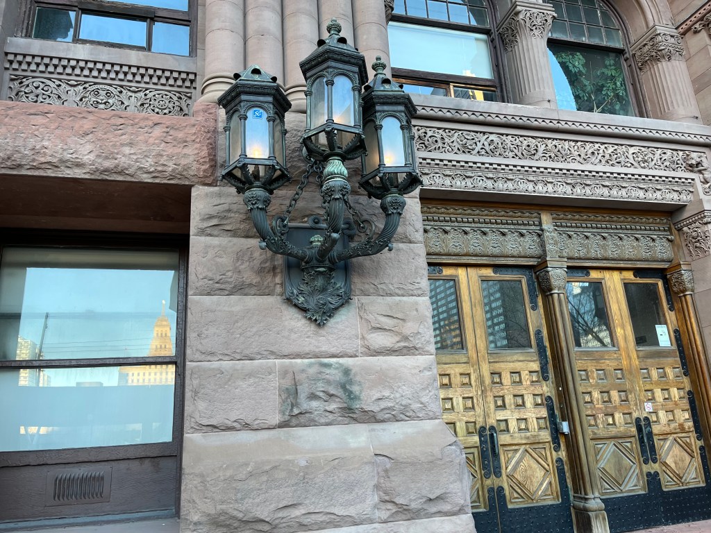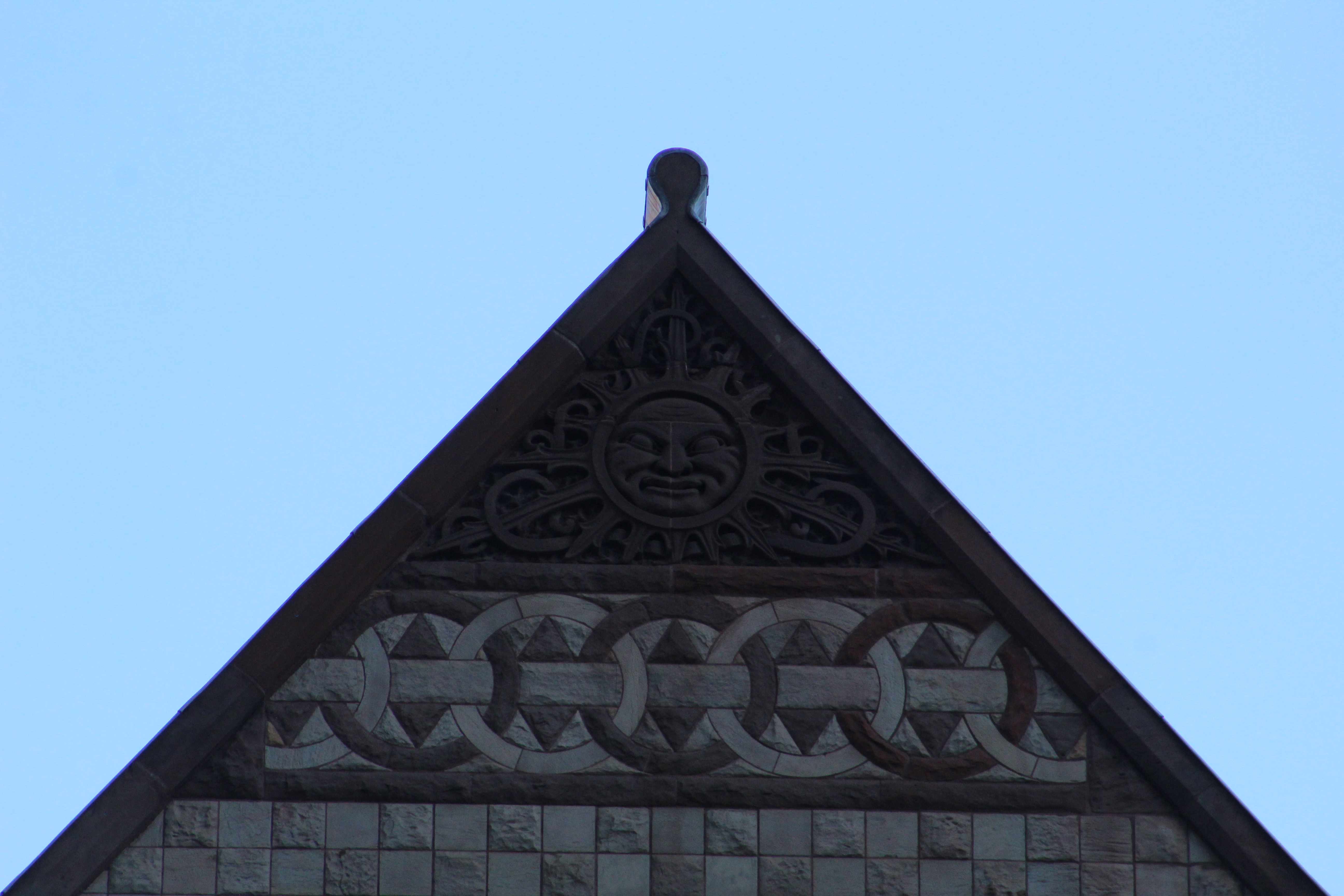 The building features sandstone from the Credit Valley as well as near Orangeville and as far away as New Brunswick. There’s plenty of towers and round arched openings and delicate carvings all around the façade.