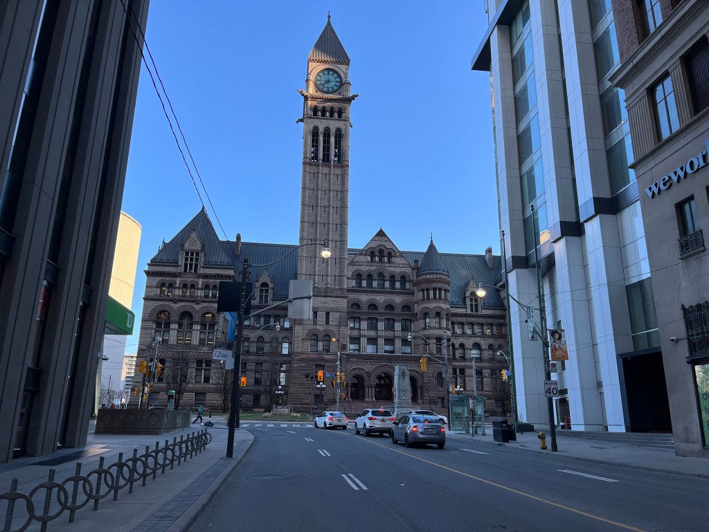 When Toronto was incorporated as a city in 1834 it changed its name from York and it started a city hall in a temporary accommodation in the market buildings. They stayed there from 1834 until 1844 as the city continued to grow. By 1845 they were looking for a new larger space for the city council to meet. They found it in what is now St. Lawrence Market but as the city continued to expand it soon needed even more space. Toronto city architect Edward James Lennox was commissioned to design a new city hall. The building was intended to house both the Toronto City Hall and York County Court House. The design work was begun in 1883 but not completed until 1886. Construction began in 1889 and there is a date stone on the west side of the building to commemorate it.