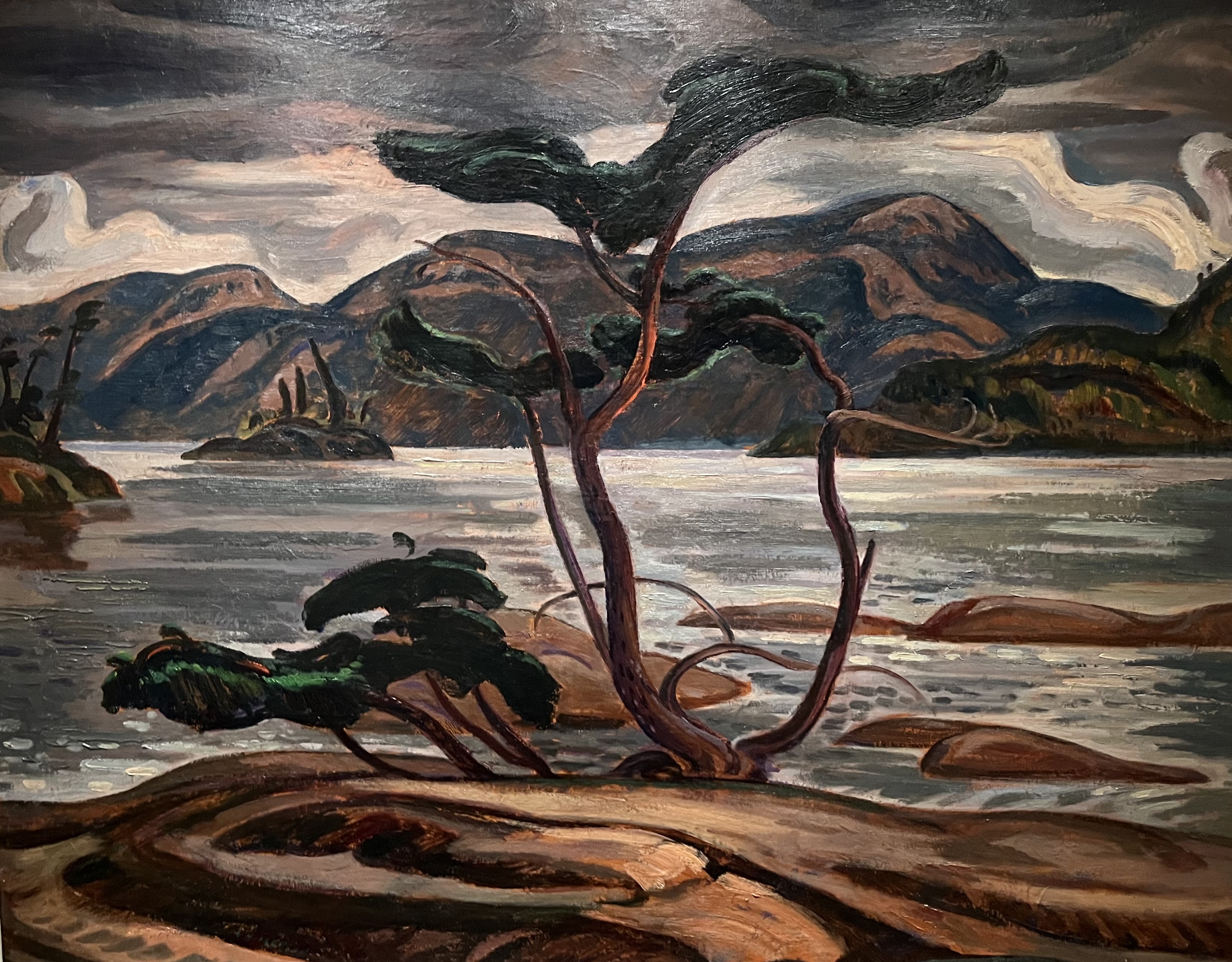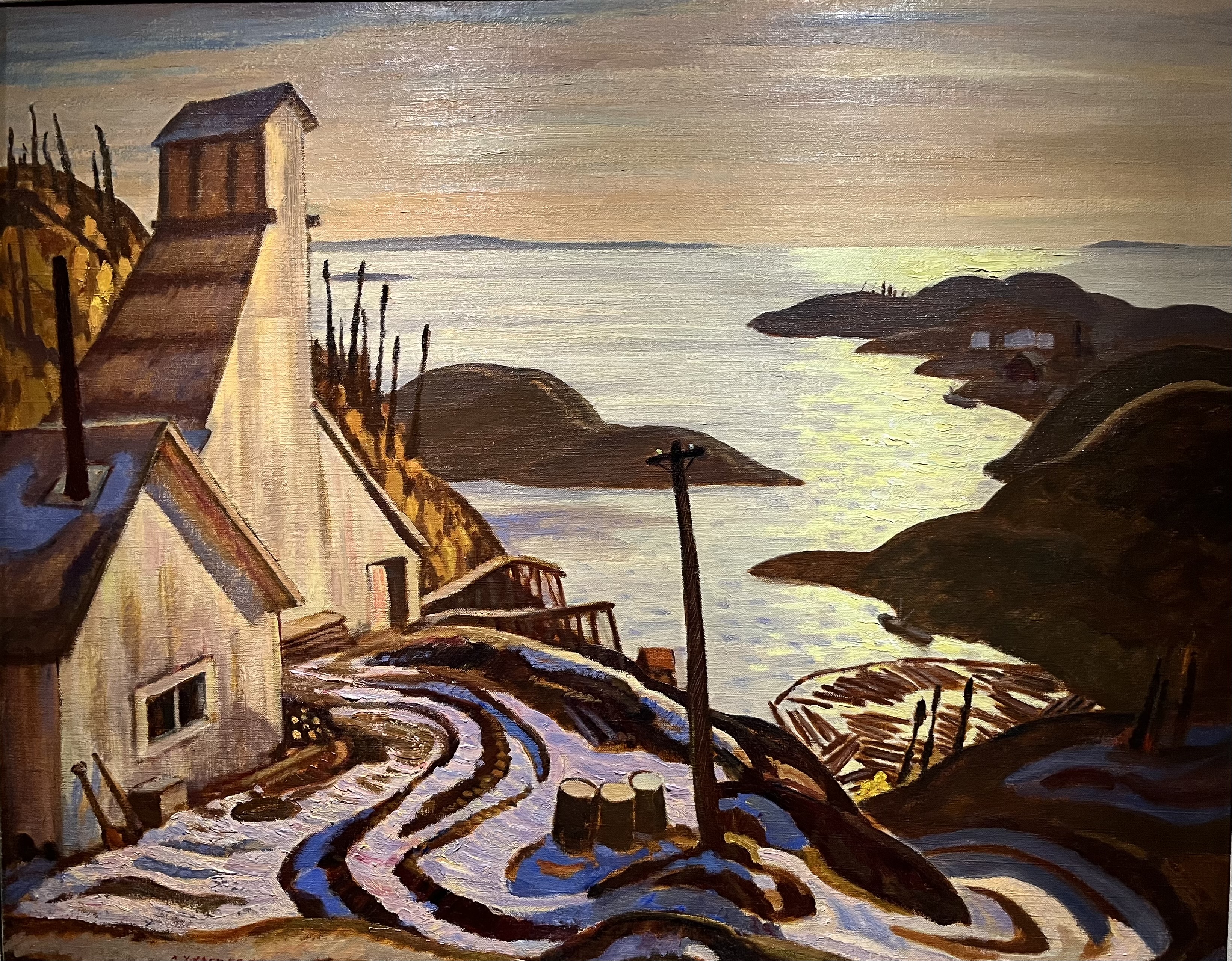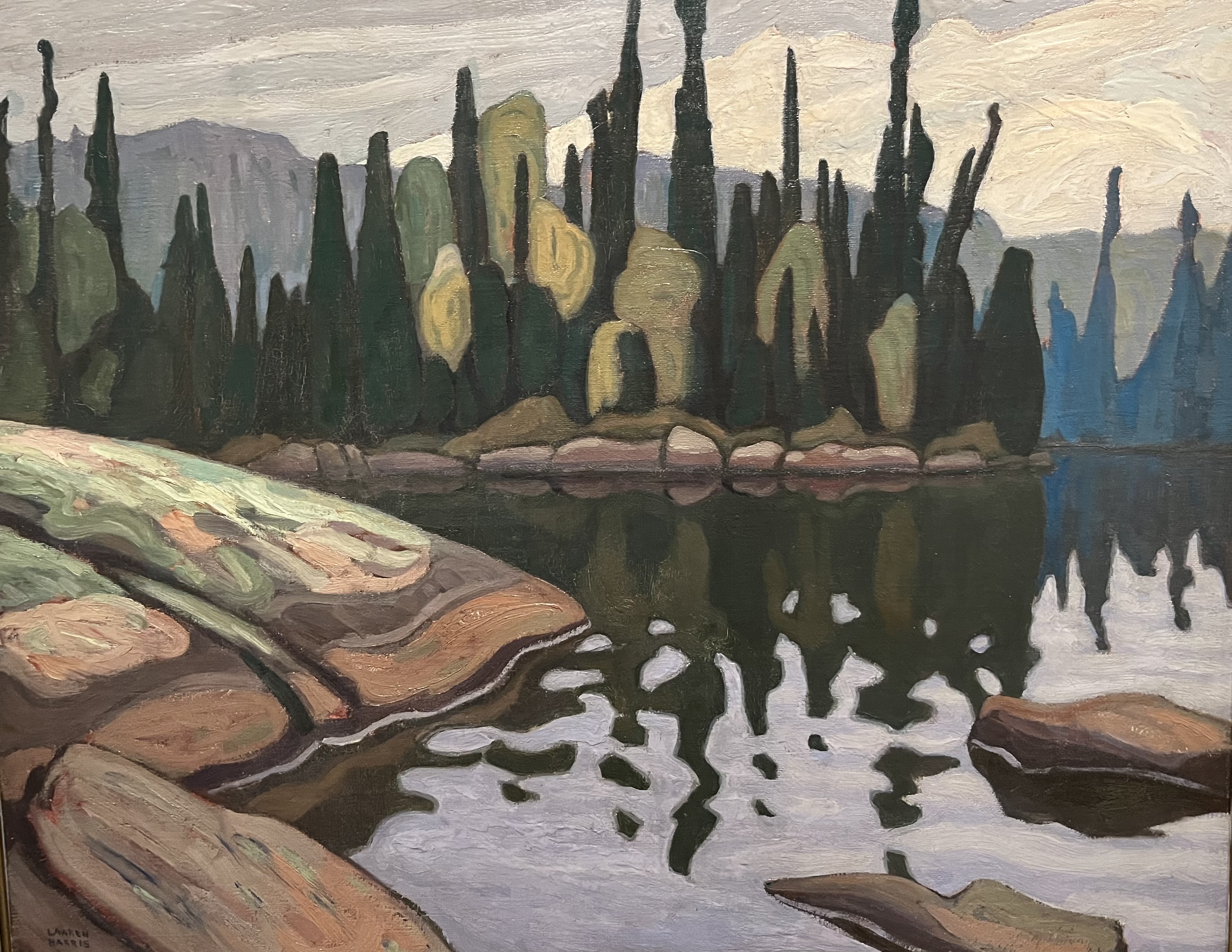 On May 7, 1920 a new movement in Canadian art was launched at the Art Museum of Toronto (Art Gallery of Ontario). The seven men who came to be known as The Group of Seven were all friends and had worked together for several years. They had been influenced by the work of Tom Thomson who passed away before the group got started. The concept for the group had been in place in 1913-1914 when Thomson was still alive but was put on hold by the First World War. Four of the members, Harris, Jackson, Lismer and Varley were directly involved and a fifth, Carmichael had his studies in Antwerp interrupted by the war. Lawren Harris had the drive, energy and wealth to make the group happen and became the de facto leader. It was at his home at 63 Queen’s Park in Toronto that the group had its founding meeting in March of 1920. Between 1920 and 1932 the group held eight art exhibitions before they disbanded. MacDonald passed away in 1932 but the others went on to lengthy careers after the group was finished. In this post we’ll look at each of the seven as well as some other Canadian art that is housed in the collection.