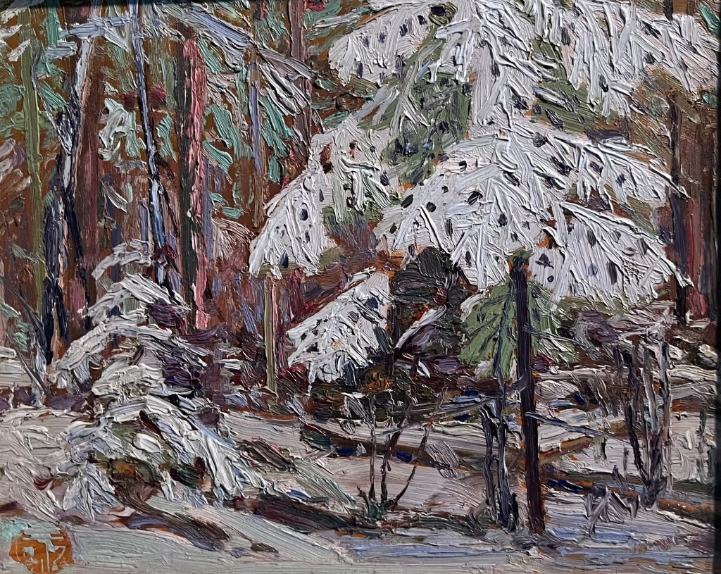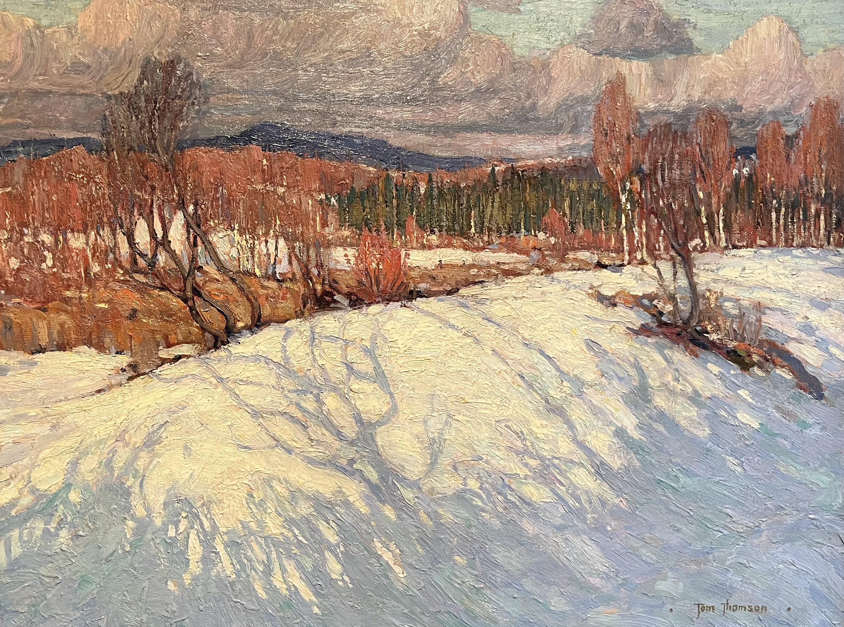 Tom Thomson was born in 1877 and died in July 1917 when he drowned in Canoe Lake in Algonquin Park. Tom made his first journey to Algonquin in 1912 and began sharing a studio with A.Y. Jackson in 1914. Thomson began producing hundreds of oil sketches and a handful of large-scale paintings. Tom was reputed to be an avid outdoorsman, canoeist and Algonquin guide but in July 1917 he drowned in Canoe Lake in circumstances that are still not understood.