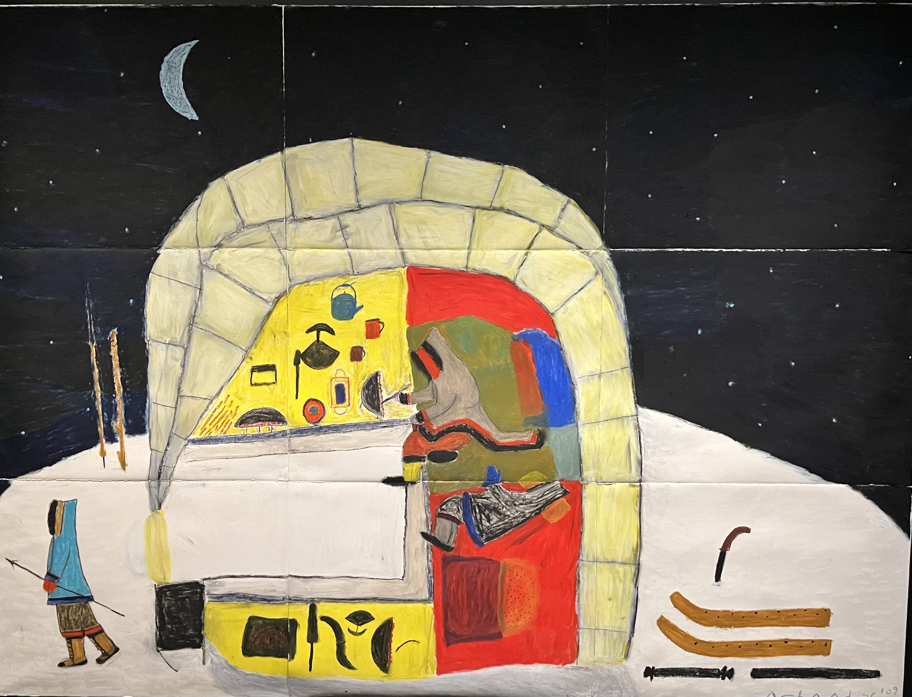 Elisapee Ishulutaq 1925-2018 documented Inuit life in her art during her 50 year career. Starting in 1970 she created colourful drawings and prints that recreated traditional life and stories of her culture.