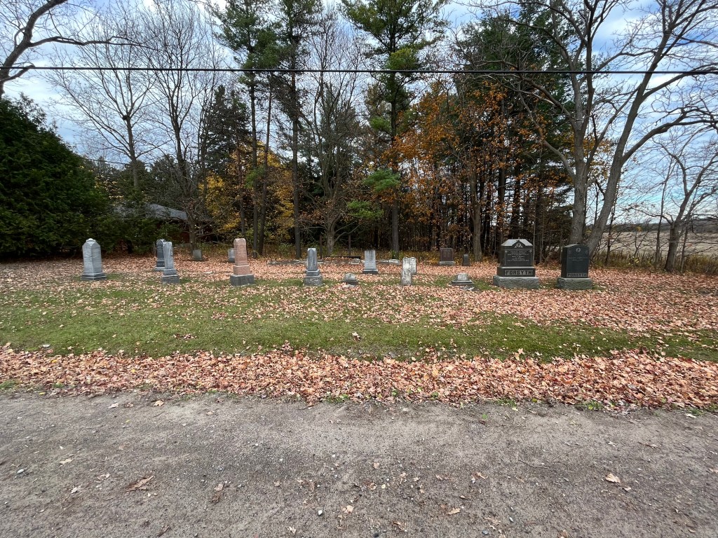 Just up the road from Altona is a small family cemetery on the former Forsyth property which is the final resting place for many of the early members of that family. The Forsyth Family Cemetery has a small area at the rear where several of the earliest markers have been gathered together and laid in a horizontal cement cairn to preserve them.