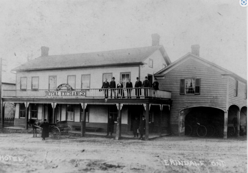 The Royal Exchange Hotel was built sometime between 1819 and 1822, although some sources say 1828, and was once known as the Halfway House. The hotel may have been 100 years old in May of 1919 when it was destroyed by the village fire and never replaced.