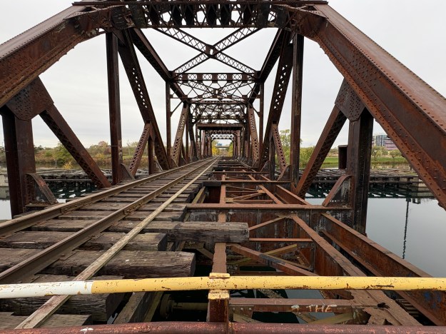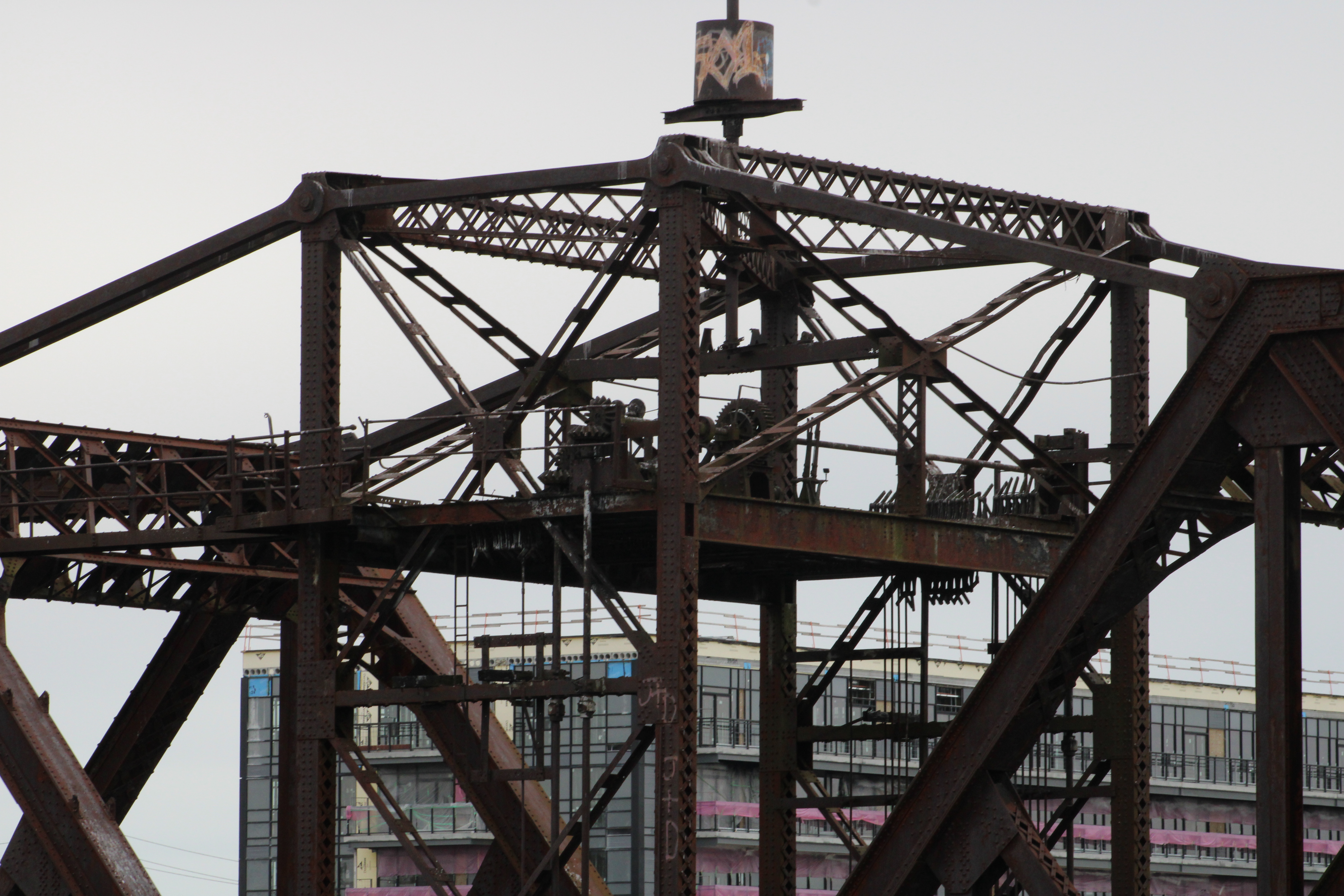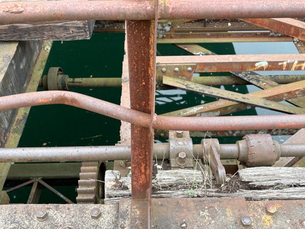The bridge is now marked with no trespassing signs and the danger is quite real as there’s plenty of ways to get injured on this rusty old relic. Where the rails are missing the gears and turning mechanisms can be clearly seen.