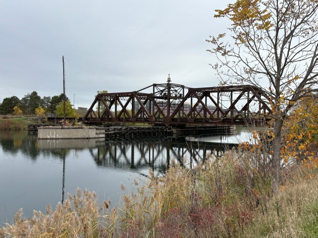 I recently visited Welland to see a new client and while passing through town I noticed an abandoned swing bridge. Naturally, this provided an opportunity to get some pictures and learn a little about the local history. The bridge is known as Bridge 15 on the Welland Canal and was built in 1910 to replace an earlier wooden bridge at this location. The bridge style is a Baltimore Truss Swing Bridge. A Baltimore Truss bridge is reinforced by an additional brace in the lower section of the truss. This is intended to prevent buckling in the beams and to reduce deflection. This style of bridge was primarily used for railway construction but is not very common with few remaining examples.