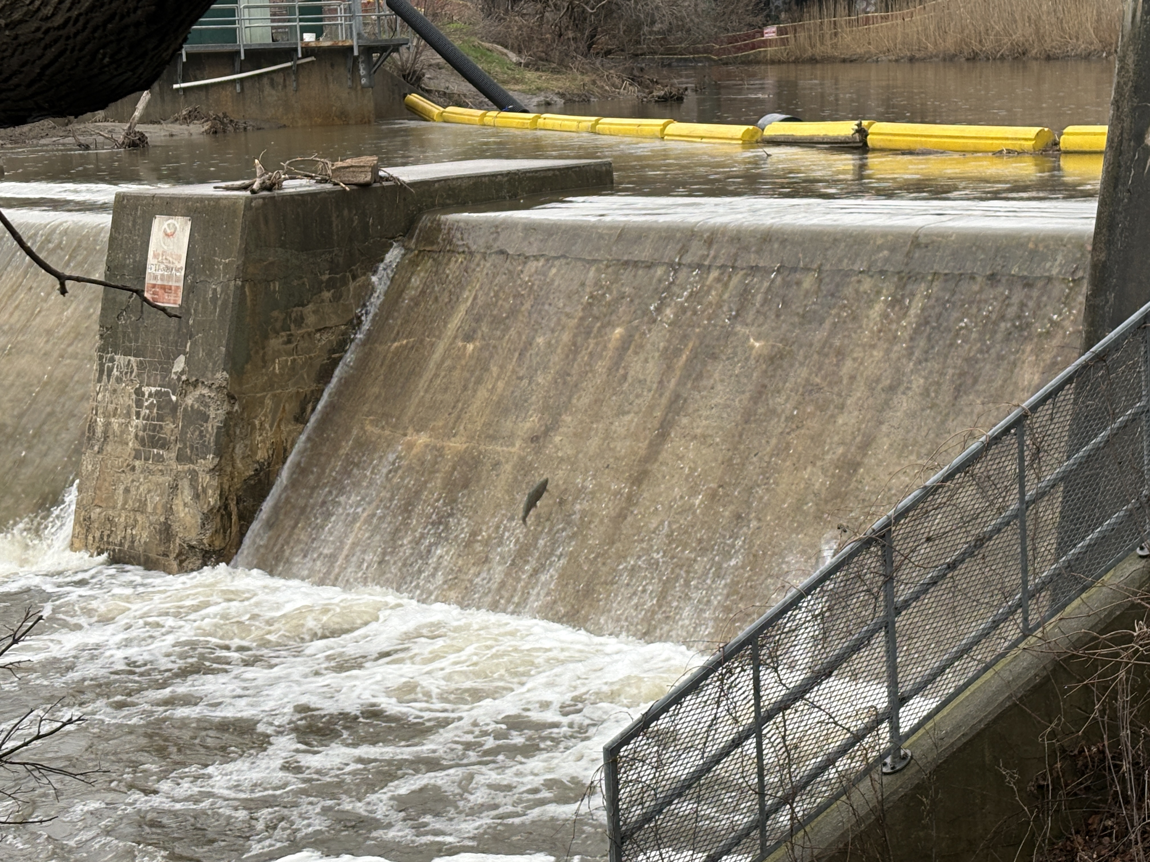 Corbett’s dam is a modern concrete dam replacing the older wooden crib construction. Until 1973 migratory fish were manually lifted over the dam. It was decided to build a fish ladder to let fish jump over the dam but keeping invasive species out of the upper reached of the river. The image below shows one of several fish which were trying to jump the highest part of the dam. I guess they never taught them about the ladder when they were in fish “school”.