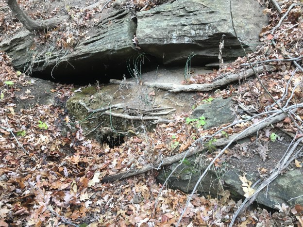 As you follow the fourth line south down the side of the ravine you see the back of the remaining abutment from the former bridge.