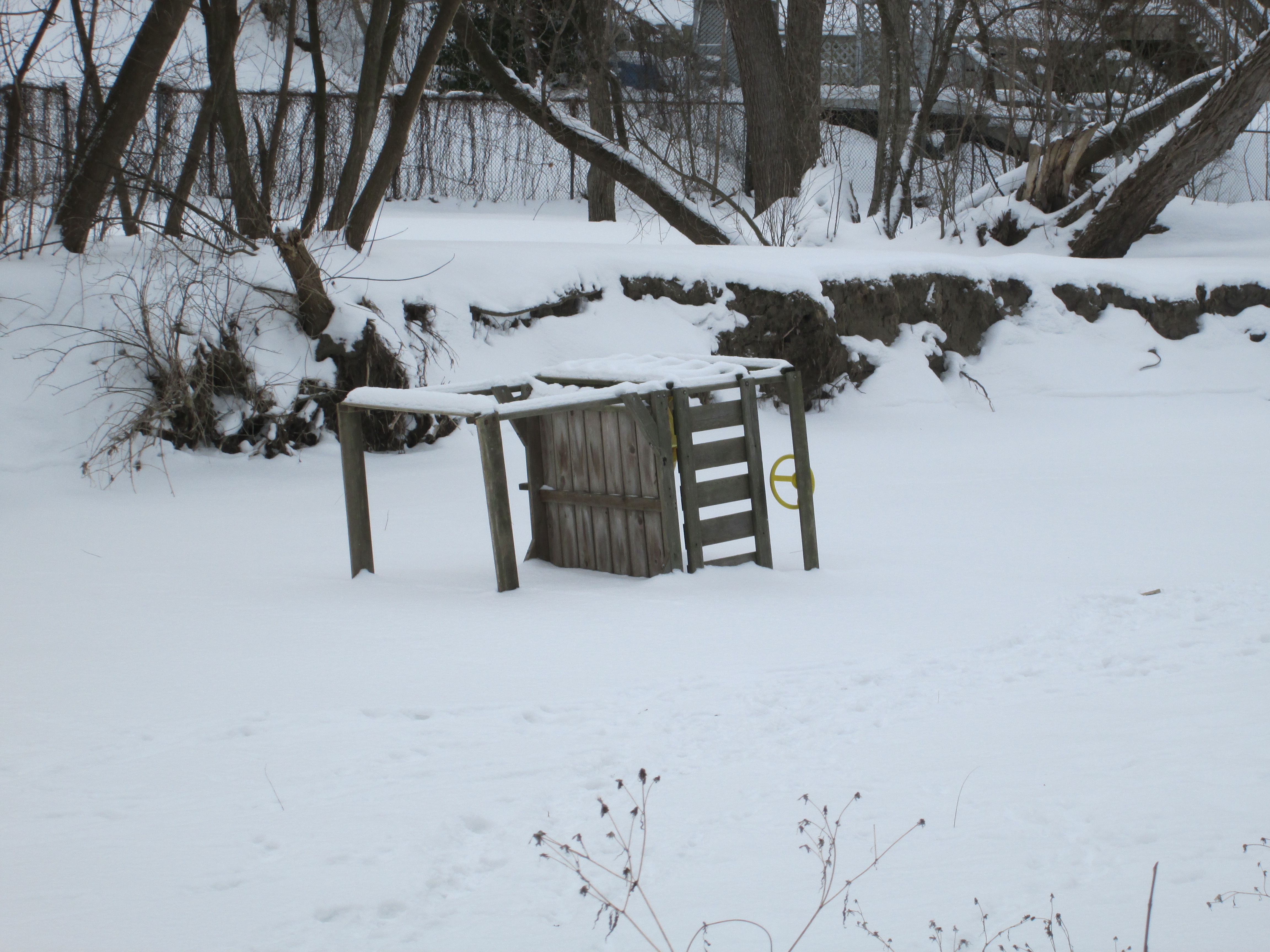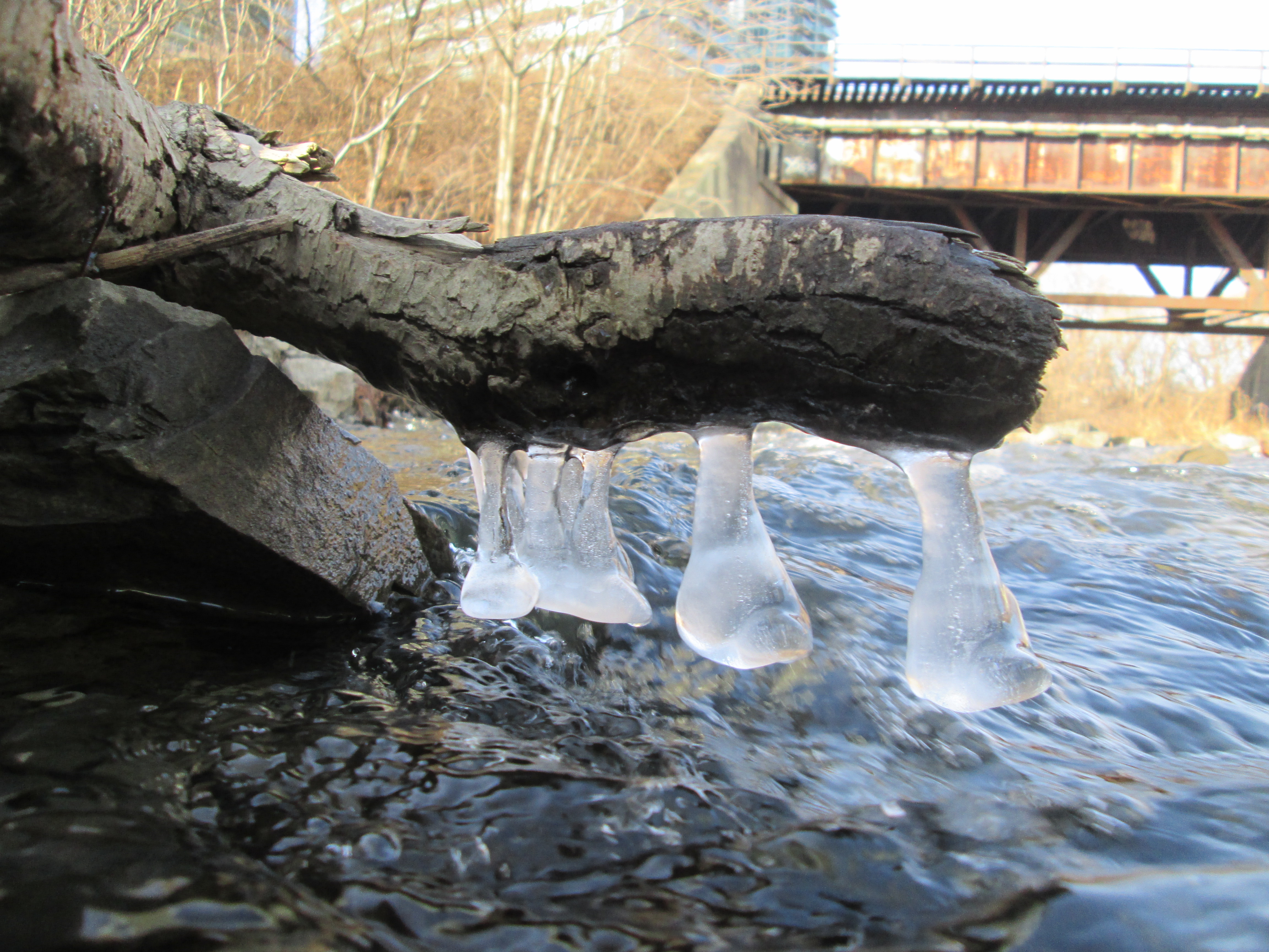 As we continued down stream we saw that someone’s playground toys have ended up frozen in the middle of Mimico Creek.