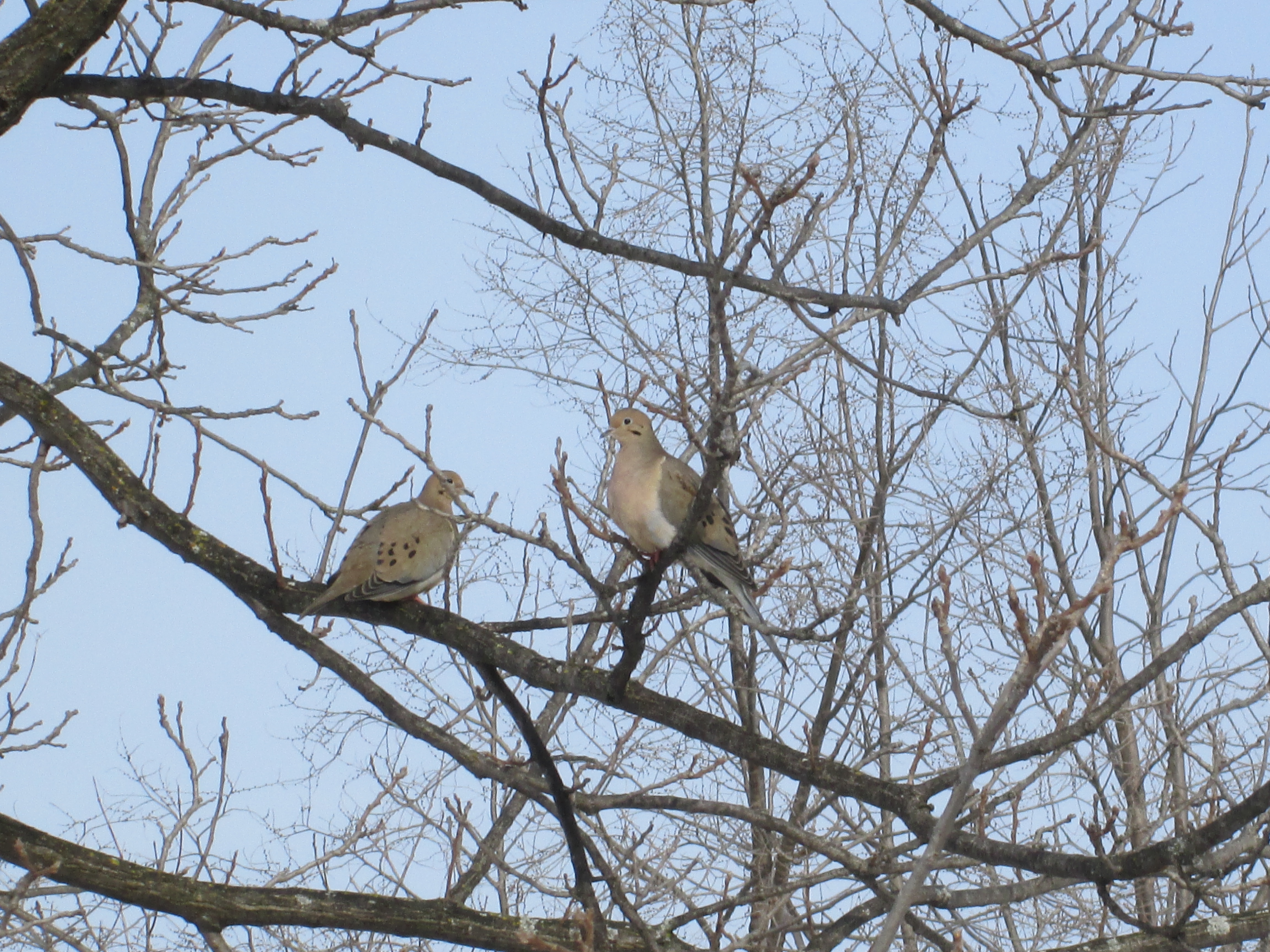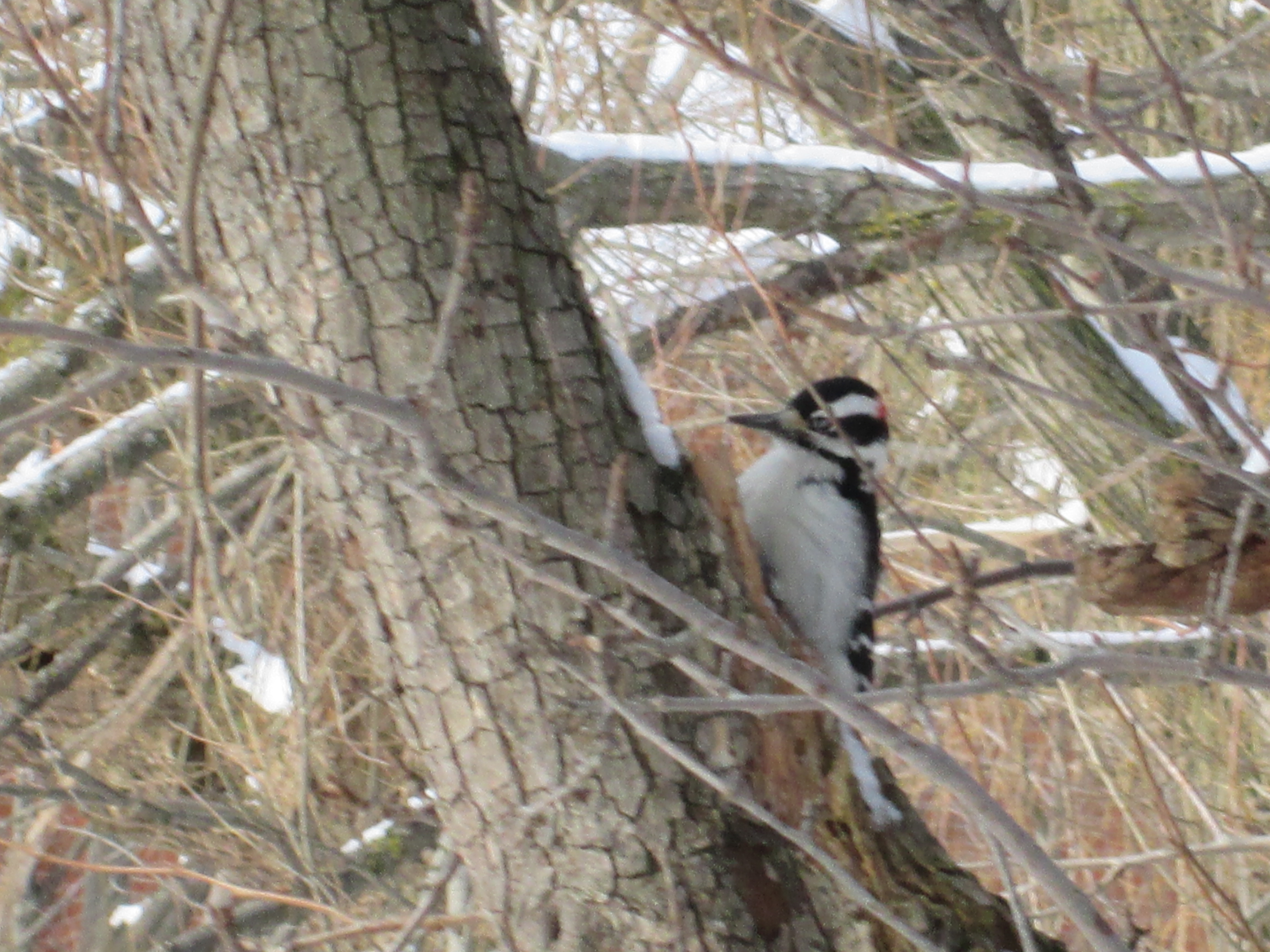 We followed the trail under Rathburn road into Echo Valley Park. There is section of trail here that passes through a wooded area. If you stand on the side of the trail for a few minutes all the birds that have been scattering in front of you will return. We saw a selection of Blue Jays, Cardinals, Doves, Downey and Hairy Woodpeckers and Chickadees. A Kestrel appears to have seen them as well.