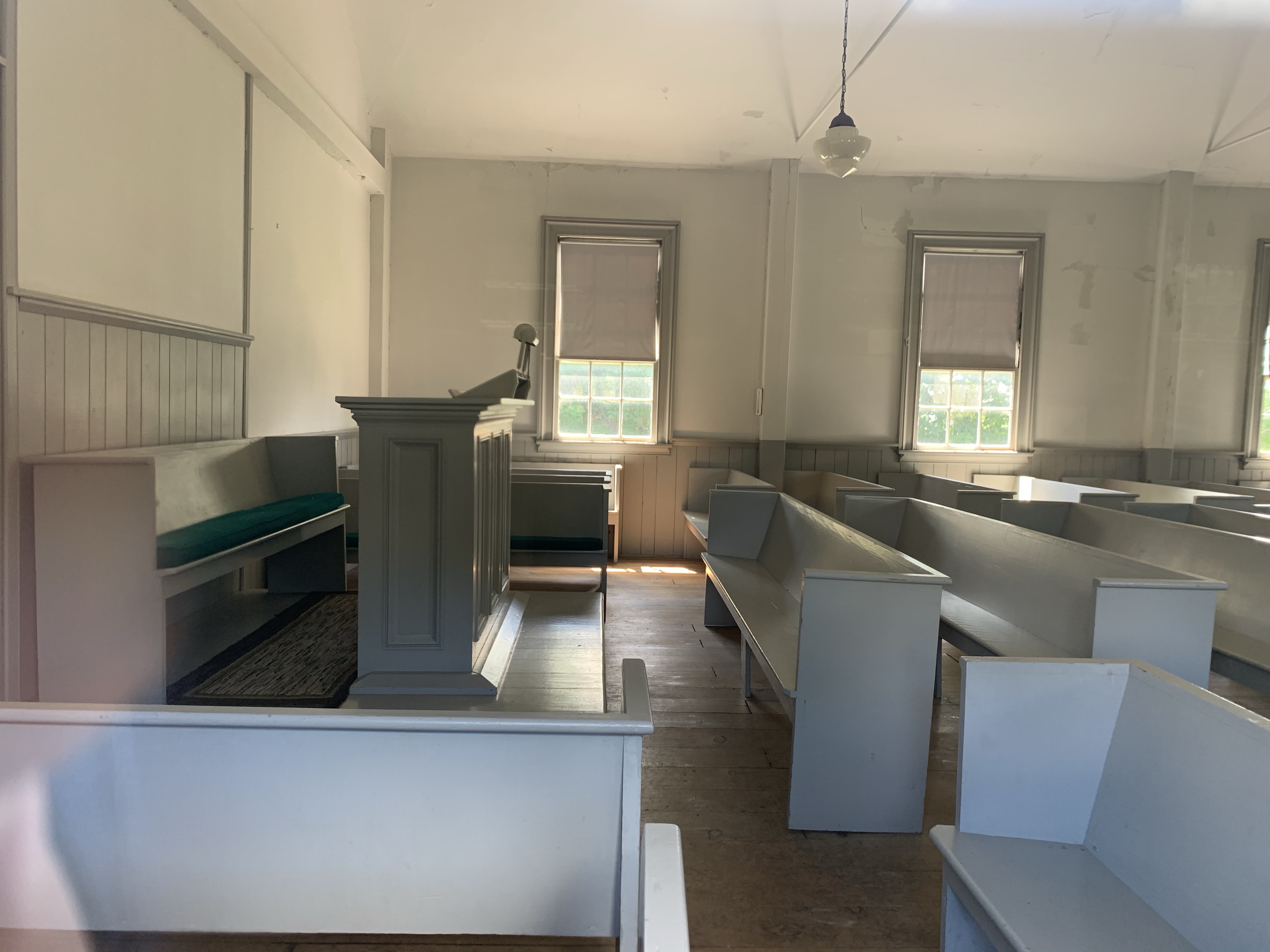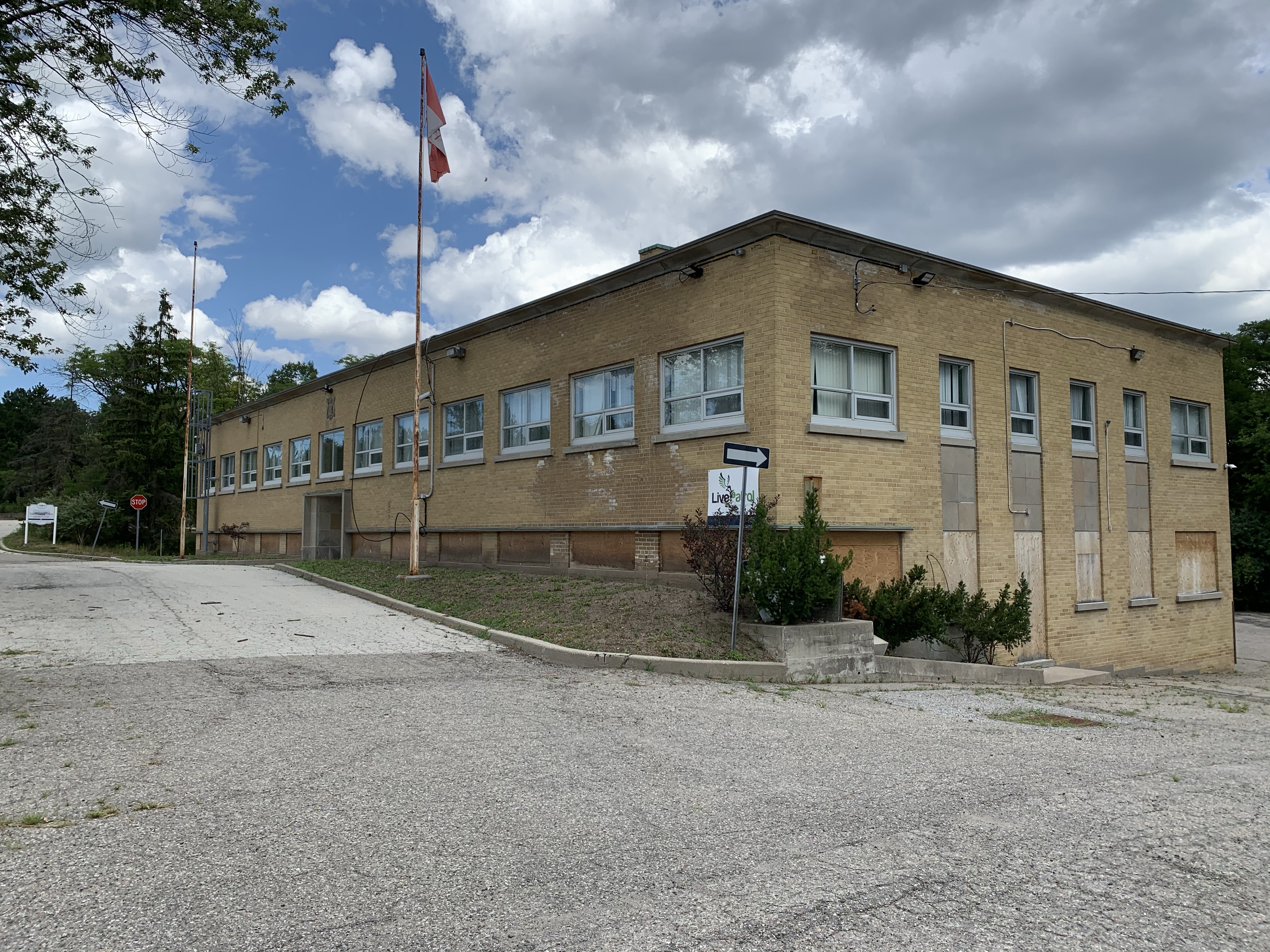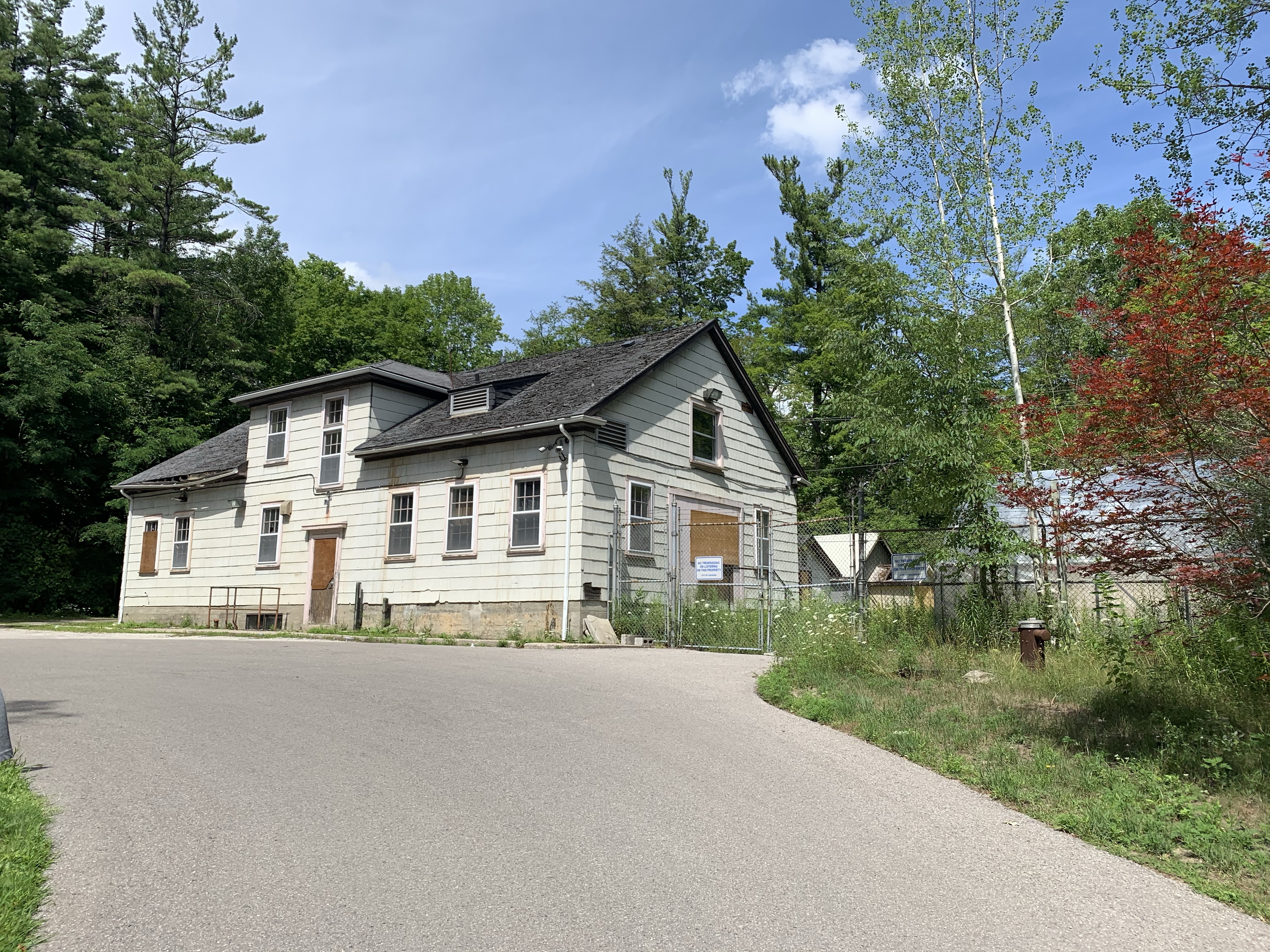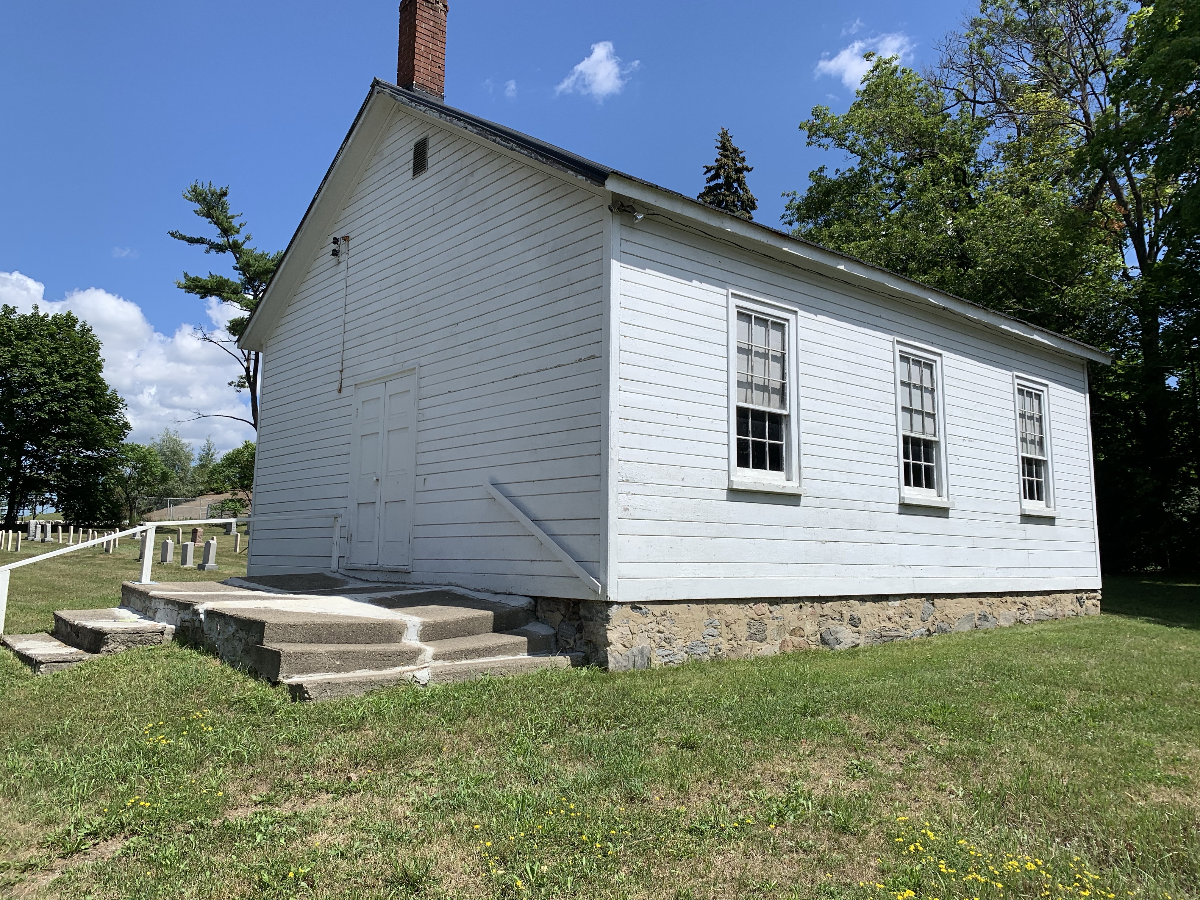 Across the road from the church stood the town school. The original frame structure was built in 1843 and then replaced with the structure that still stands behind a new front section. The bell appears to be missing from the small cupola but the date stone is still clearly legible. It reads “School Section No 15 Erected 1872”.