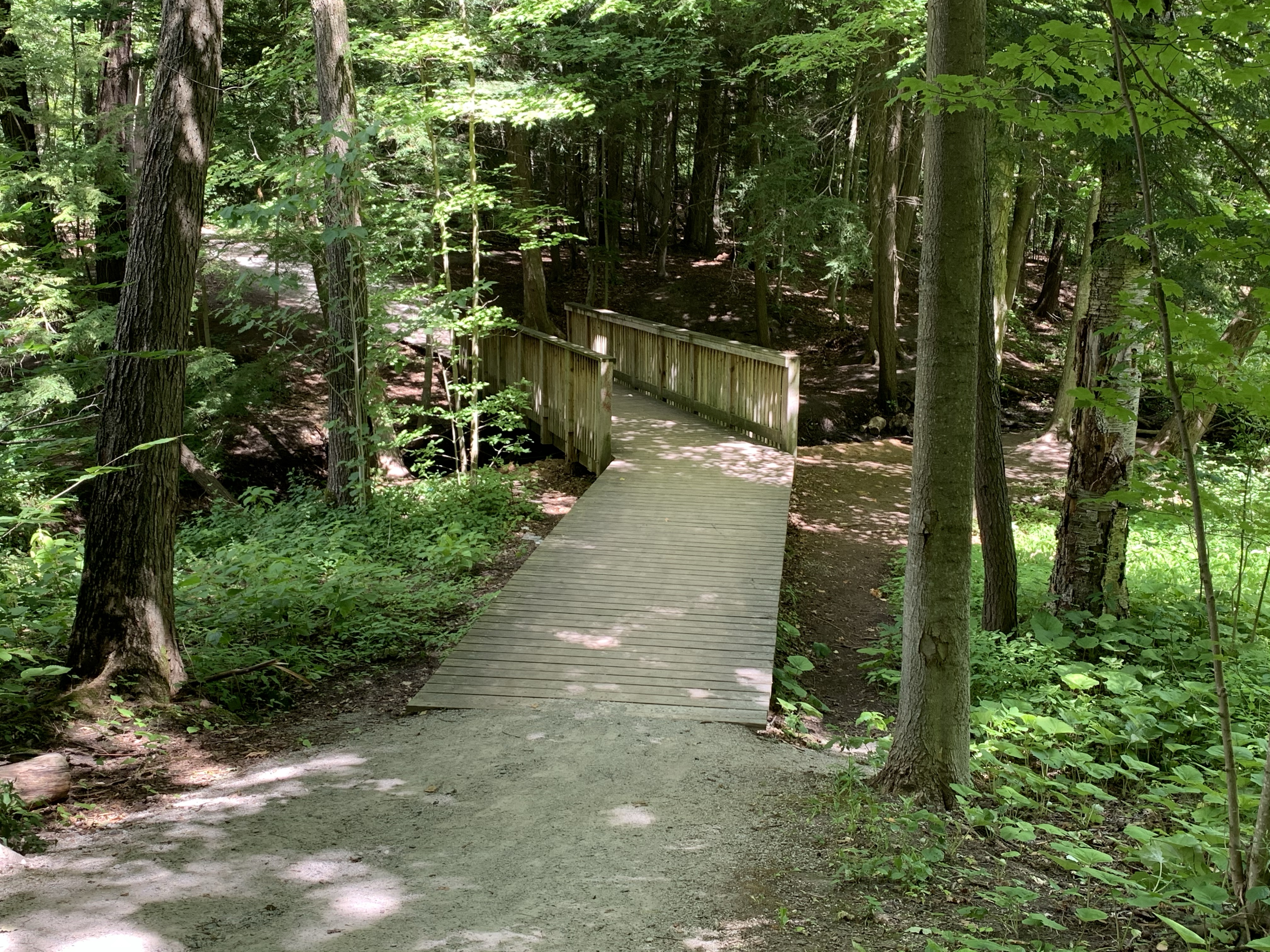 There is a lookout two-thirds of the way up the side of the ravine that provides a nice view out across the nature reserve. The forests on the far side of Highway 27 are a bright red and orange that would really look nice on a sunny day.
