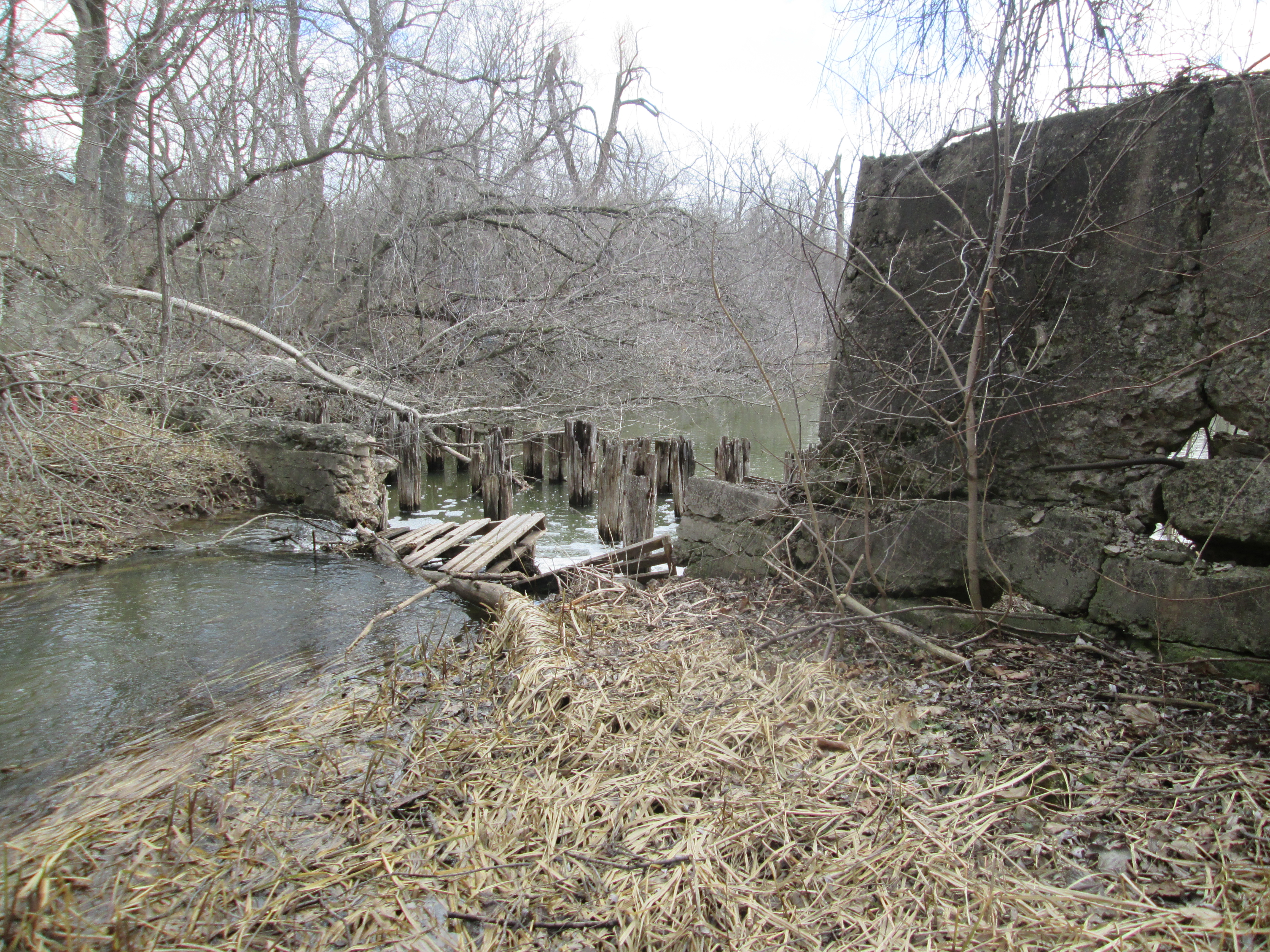 The lime mill was built by John Newton who took the burnt lumps of limestone and ground them into powder. This was then “slaked” with water and mixed with sand and cow hair. The resulting mixture was used as mortar in construction. The mill ruins and the remains of the stone arch from the tail race are all that is left. These have been deteriorating from people climbing on them and the arch has lost several rows of stones. They have now been protected behind a recently installed fence.