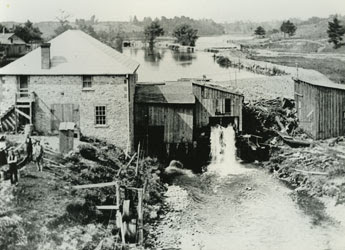 The mill dates back to 1846 when James McFeeters and John Gray built a dam on Bowmanville Creek and erected a grist mill. The mill operated under different owners until 1908 when milling grain became unprofitable and the mill was converted to preparing feed stock. Even this operation didn’t last and by the late 1970’s the mill was once again in danger of closing permanently. It was purchased by Bob Shafer who decided to operate it as a water powered saw and grist mill and cater to those with a sense of the historic. It has now become a popular destination in the GTA where a short drive that can take you back into the pioneer lifestyle of the past.